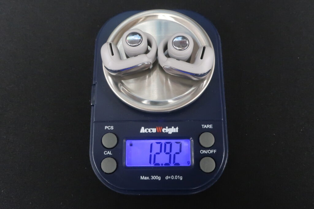 イヤホンは片方6gちょい、と非常に軽量な作りです