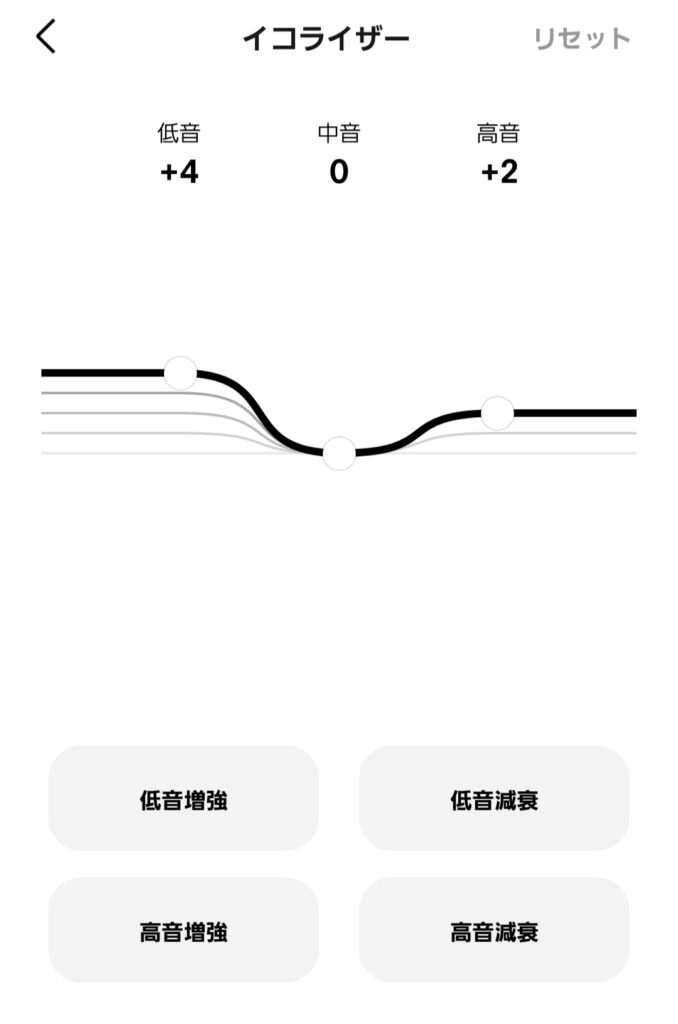 そこで使うのがアプリ内のイコライザー(EQ)設定の出番というわけです。
